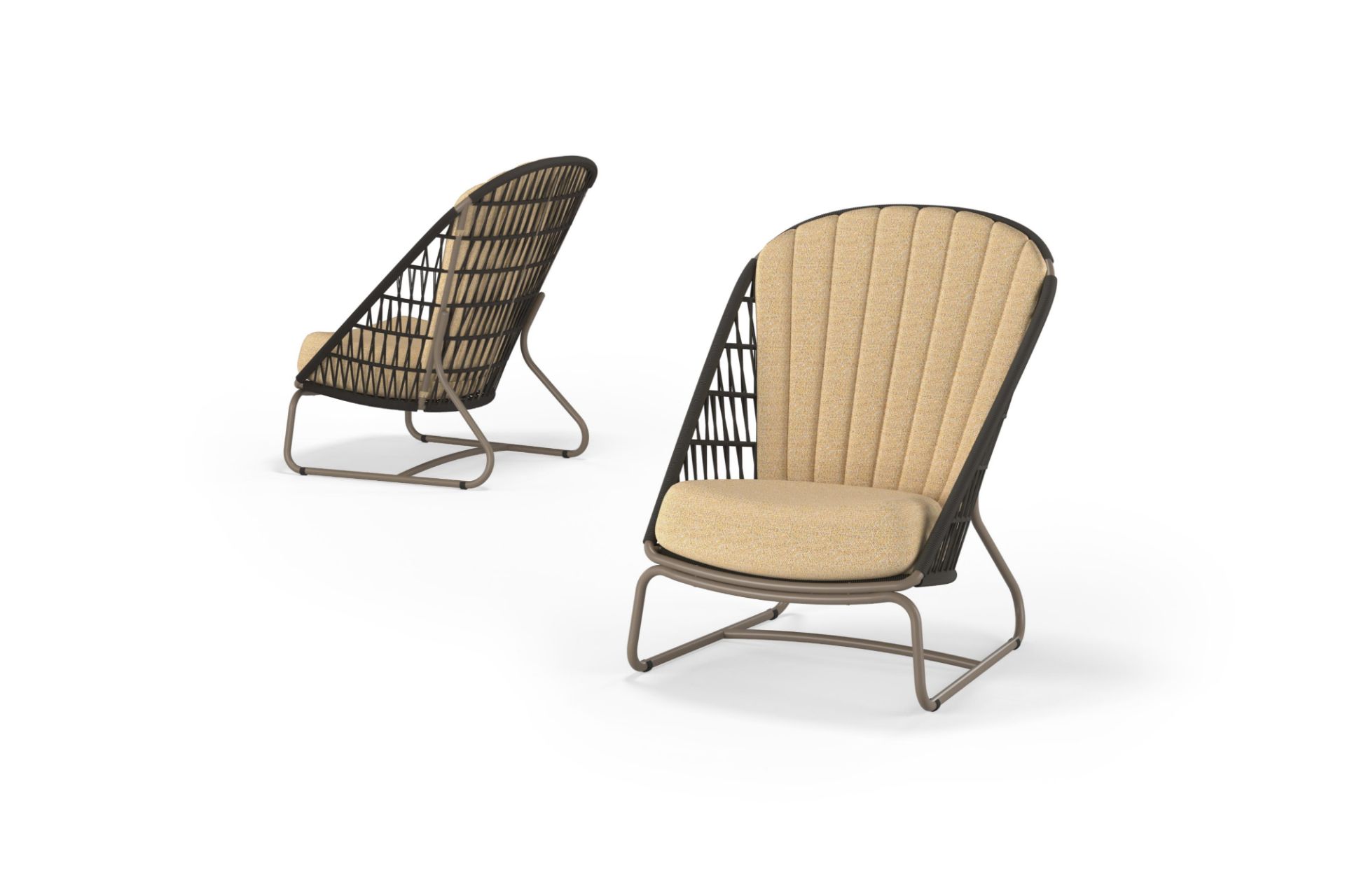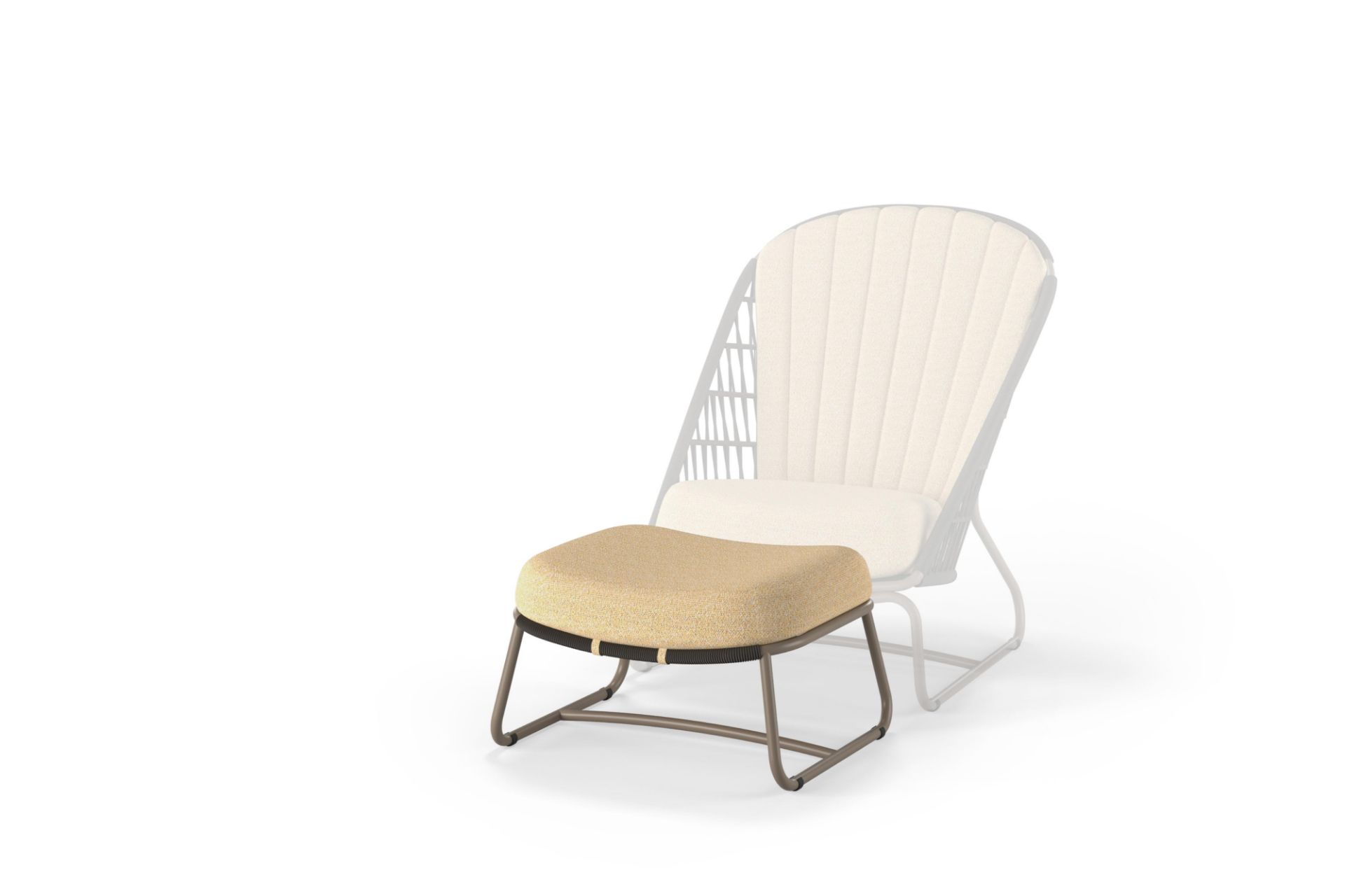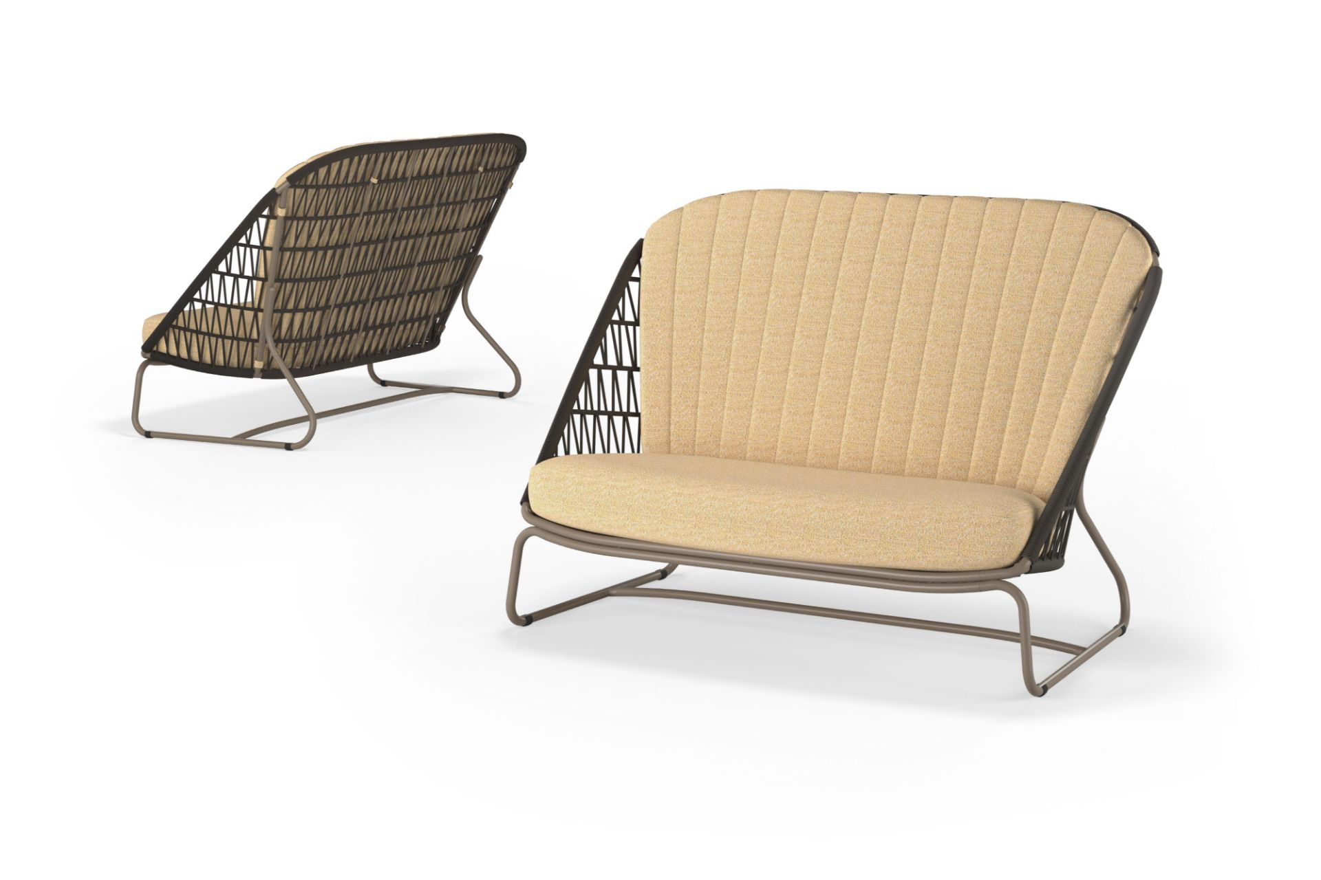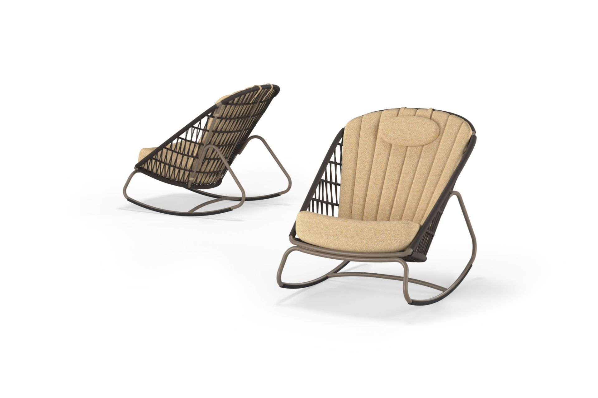 BONO Low Chairs collection includes three coordinated items: Love Seat, Lounge Chair, and Rocking Chair. Outdoor wicker in an open weave creates a shell in combination with the sturdy aluminum frame and luxurious padded cushions. Complete the experience with the matching cushioned Footstool.