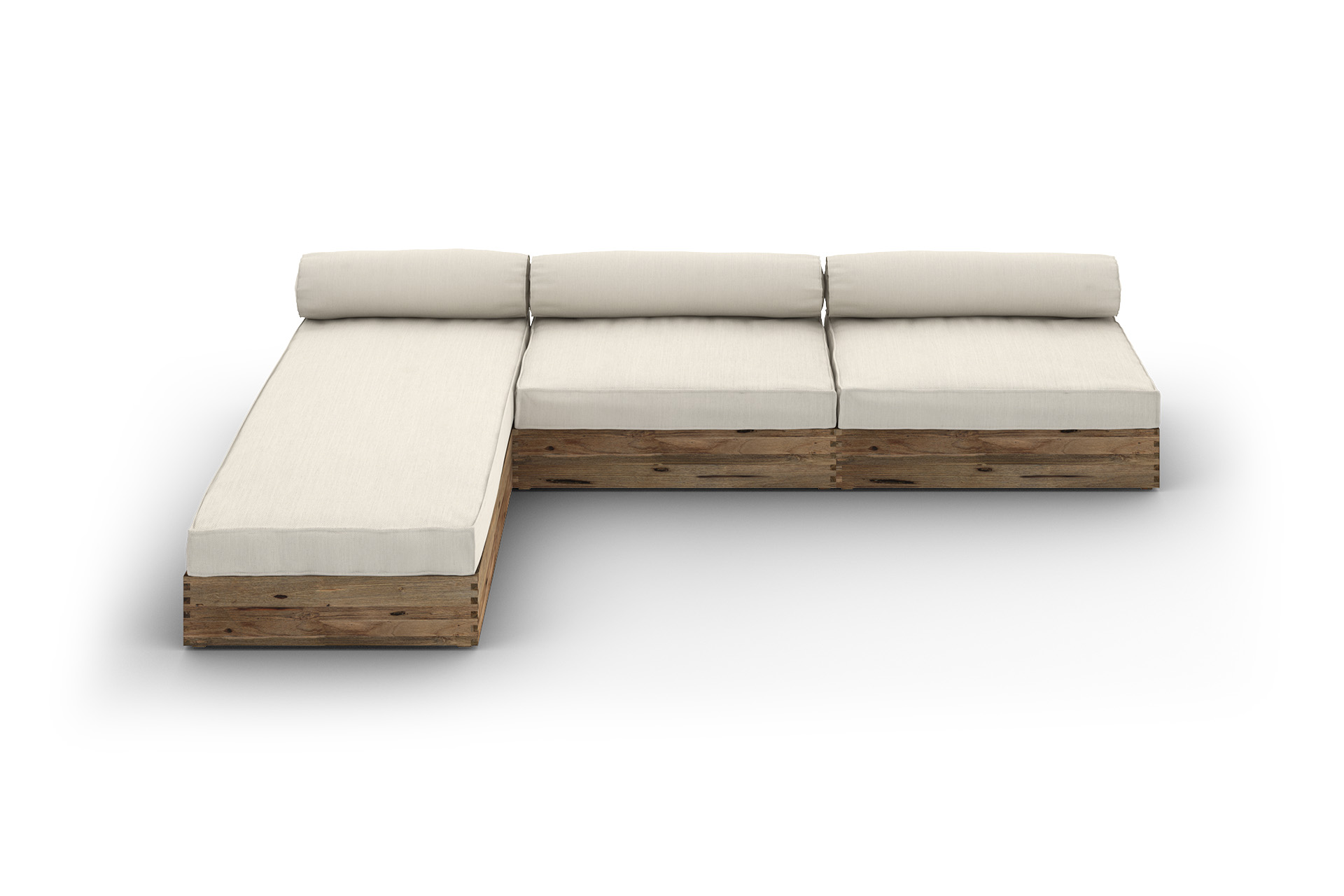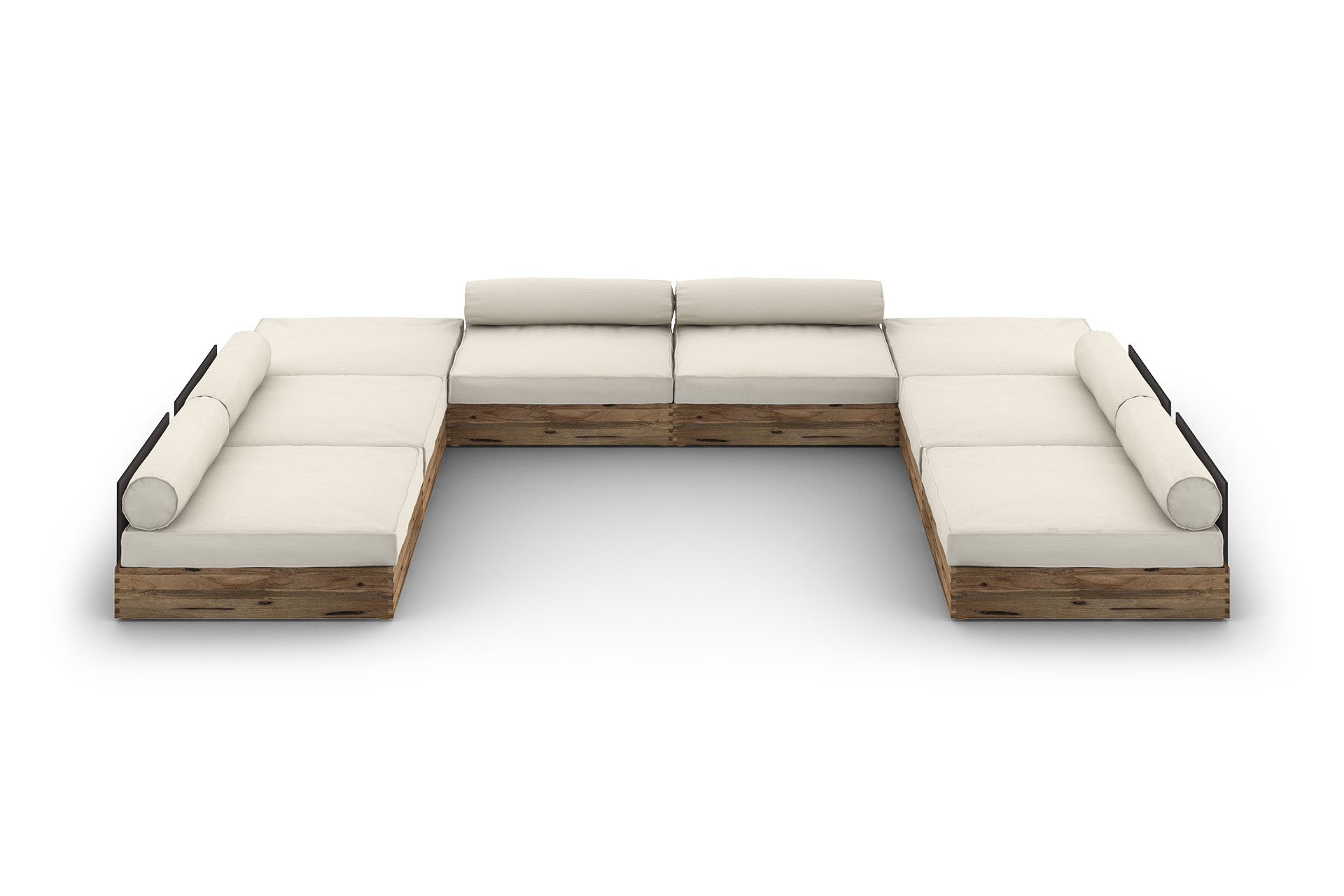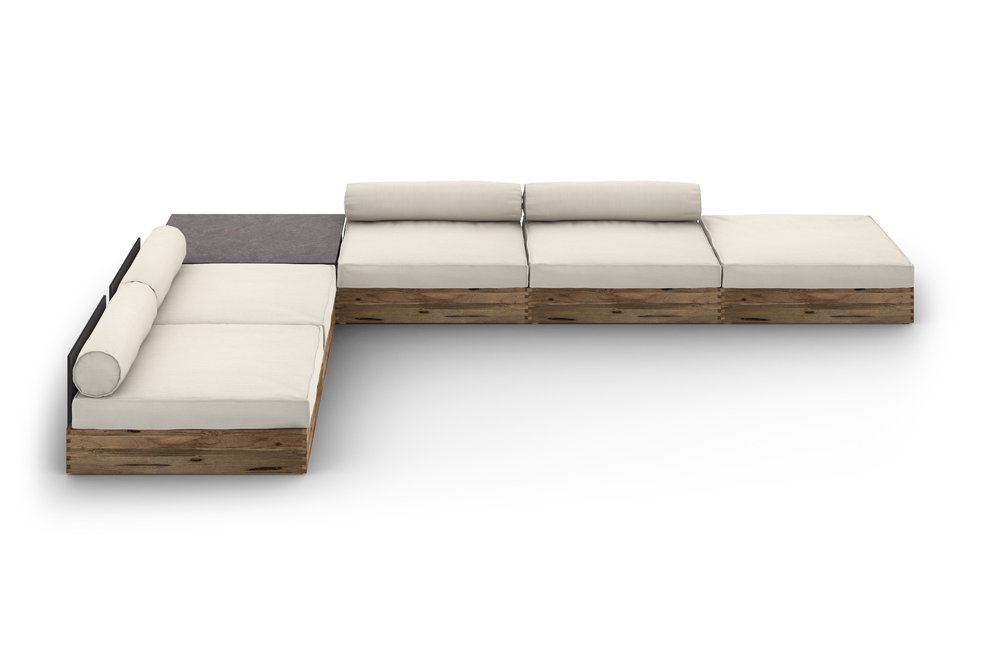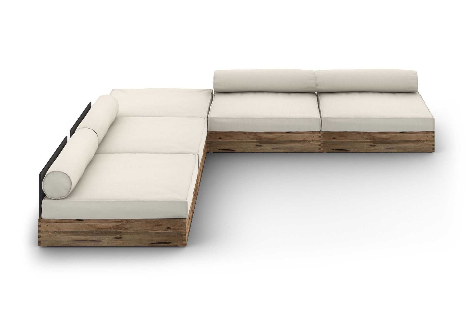 Built around a distinctive “drift-look” recycled teak base with a weathered appearance, the AIKO collection is a luxurious eco-chic outdoor line.