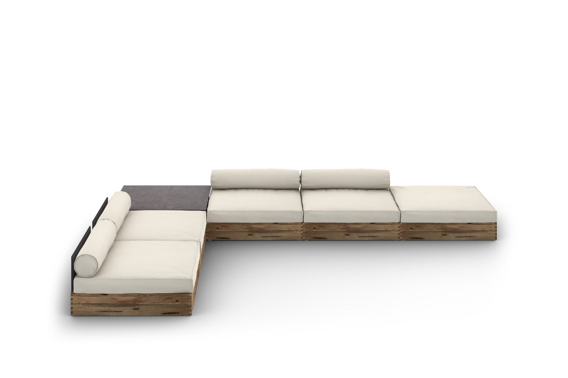 Built around a distinctive “drift-look” recycled teak base with a weathered appearance, the AIKO collection is a luxurious eco-chic outdoor line.