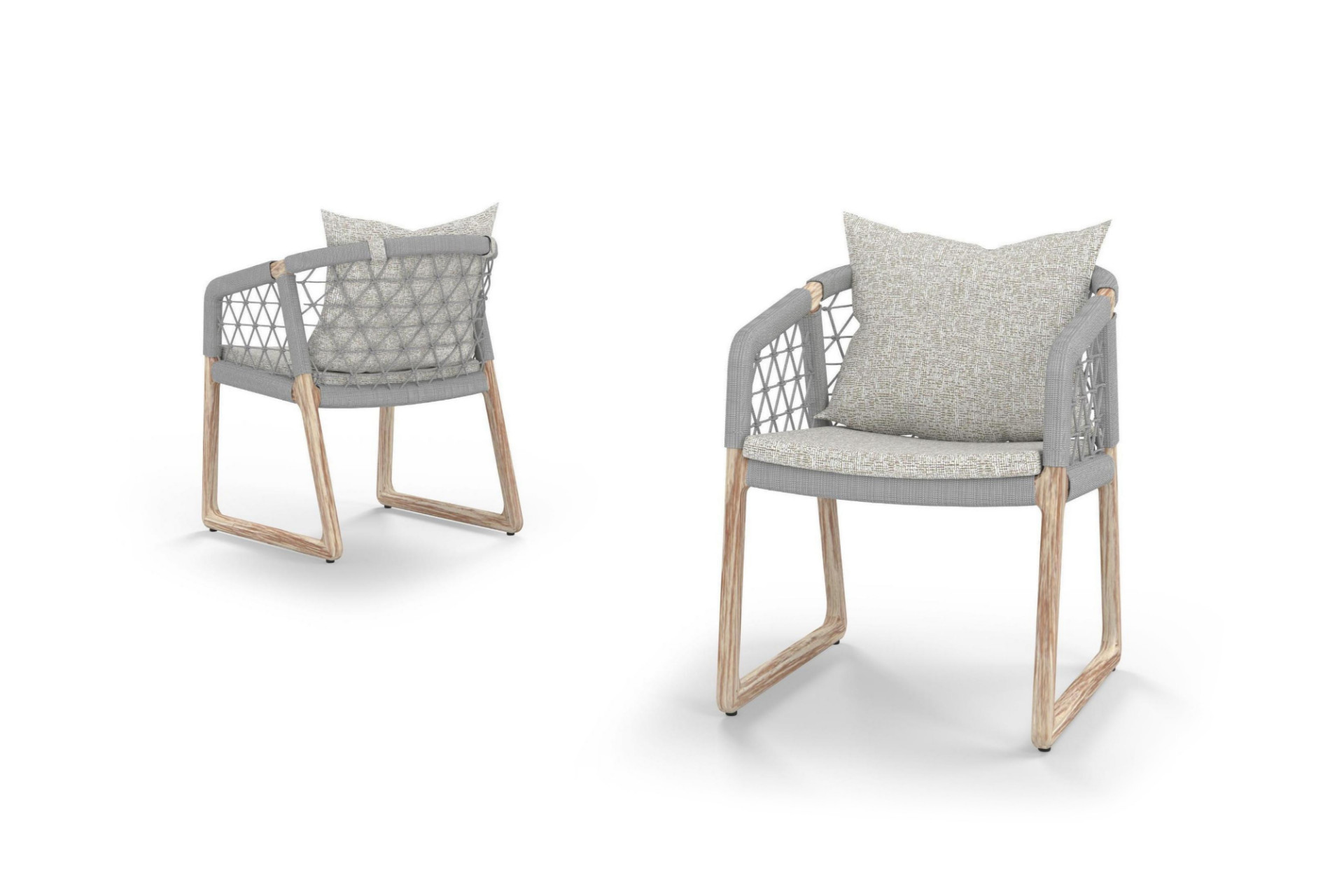 The LABUAN chairs are offered as dining and lounge, complete with matching footrests. The series is available in three teak finishes and features a handwoven round rope shell.