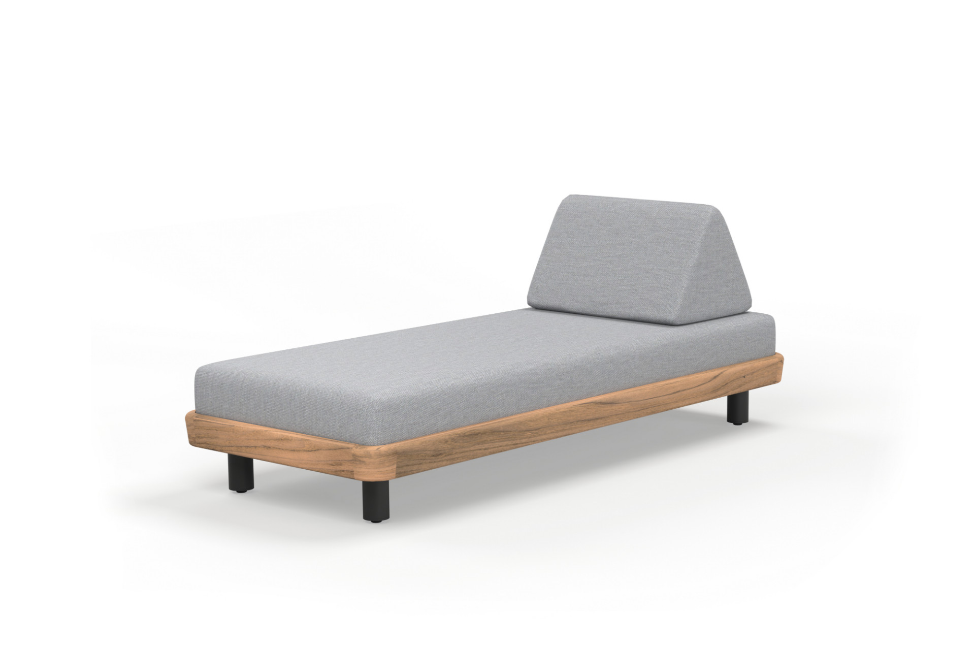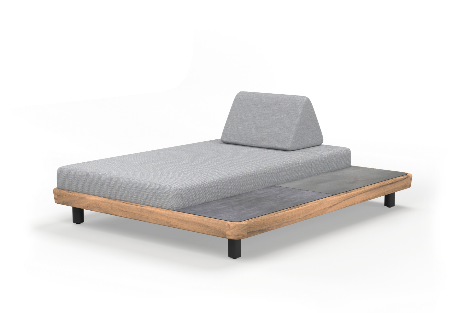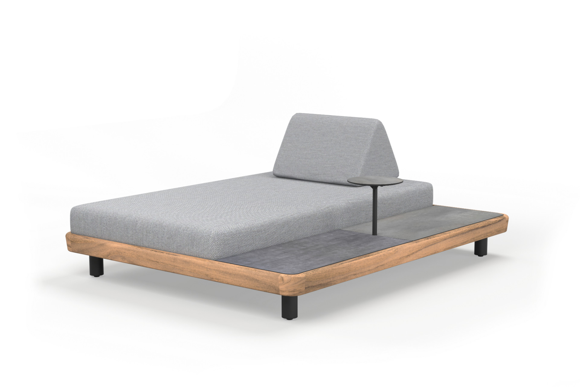 DELANO Daybeds are offered as the chaise or daybed in a single or double option. Both models can also feature a side platform with or without an integrated side table.
